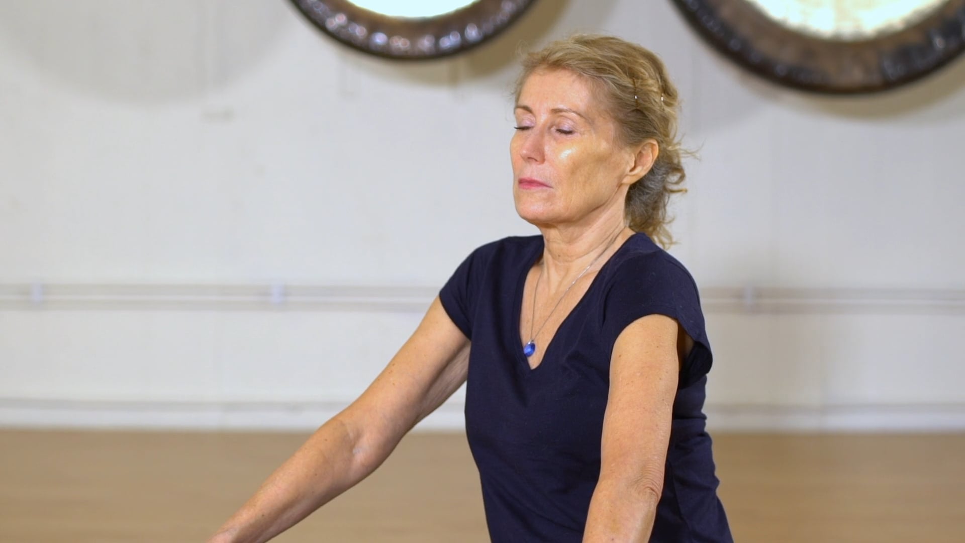 Detta pass som innehåller armsträckningar, ryggvridningar, nack/skulderövningar avslutas med några långa, djupa andetag.
